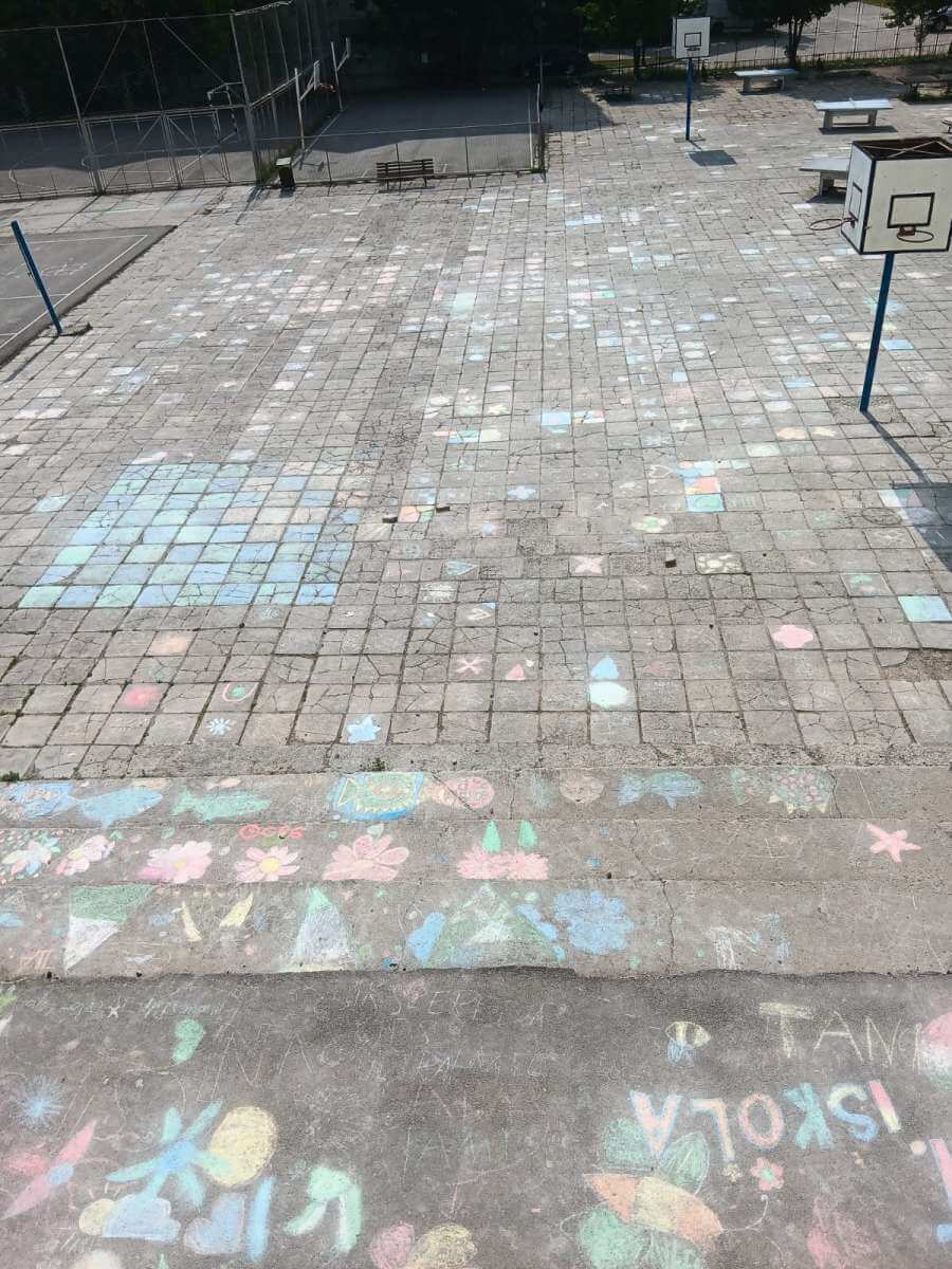 A gyerekek színes rajzokkal köszöntek el a régi iskolaudvartól, hogy méltón zárjuk le ezt a fejezetet.